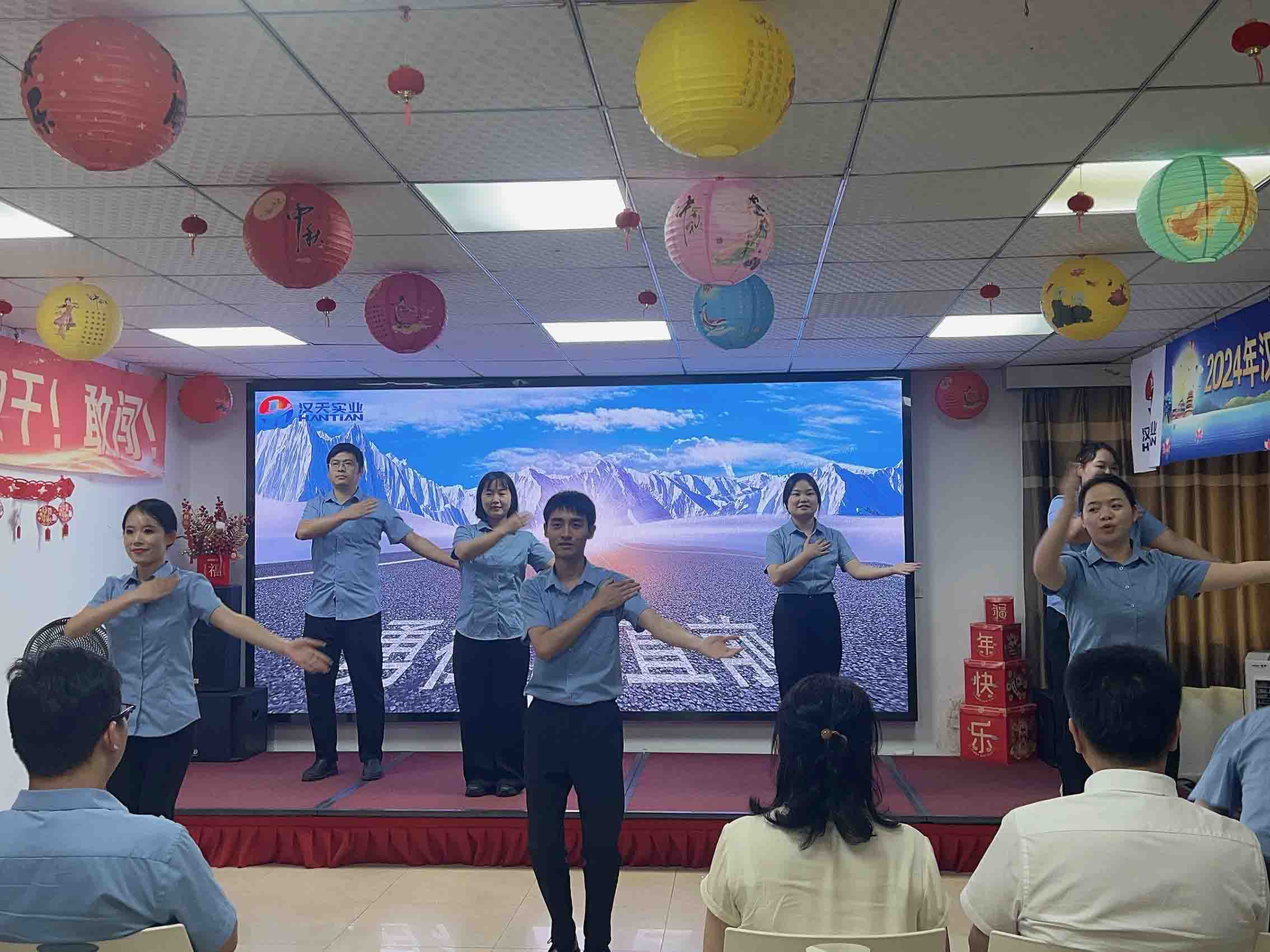 活動由漢天管理層們的舞蹈表演作為開場,瞬間點燃了現(xiàn)場的熱情與期待。隨著動感的音樂響起,公司管理層們以整齊劃一的步伐和充滿活力的舞姿,演繹了《勇往直前》這首勵志歌曲。他們身著統(tǒng)一的服裝,面帶微笑,每一個動作都充滿了力量與激情,展現(xiàn)了我們漢天人積極向上,勇于挑戰(zhàn)的精神風貌。